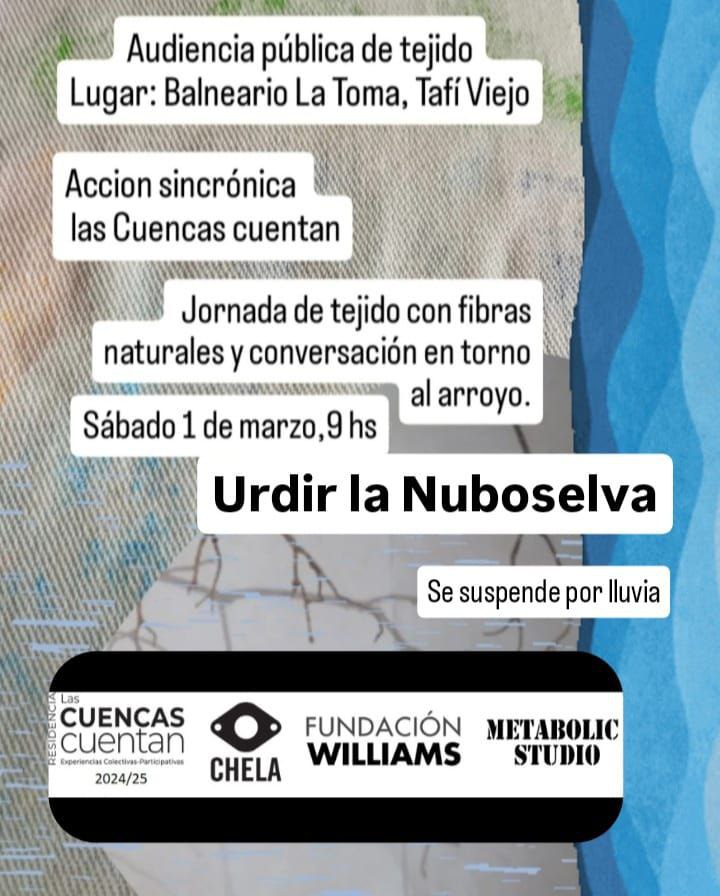 Las acciones ocurren en dos territorios de la cuenca, que reflejan la dualidad de ambientes y relaciones que se establecen en y con ella. El espacio para el fluir de la urdimbre está incluído dentro del Parque Sierra de San Javier, área que protege el paisaje de nuboselva. Es aquí donde el arroyo es valorado como un bien natural y mencionado en la historia y poesía de Tafí Viejo.